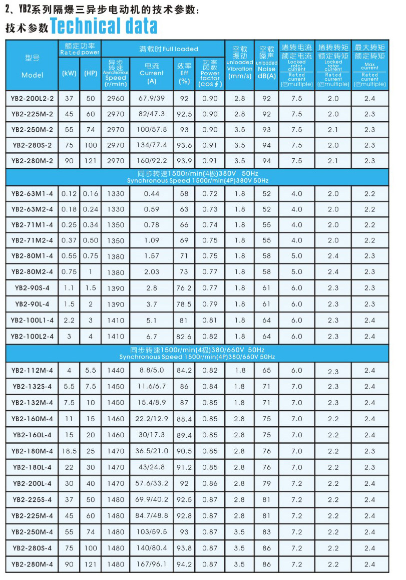 1) YB2系列隔爆型三相異步電動(dòng)機(jī)標(biāo)準(zhǔn)化程度高,通用性強(qiáng)全系列的功率等級,安裝尺寸等與YB系列基本相同,具有一定的繼承性。