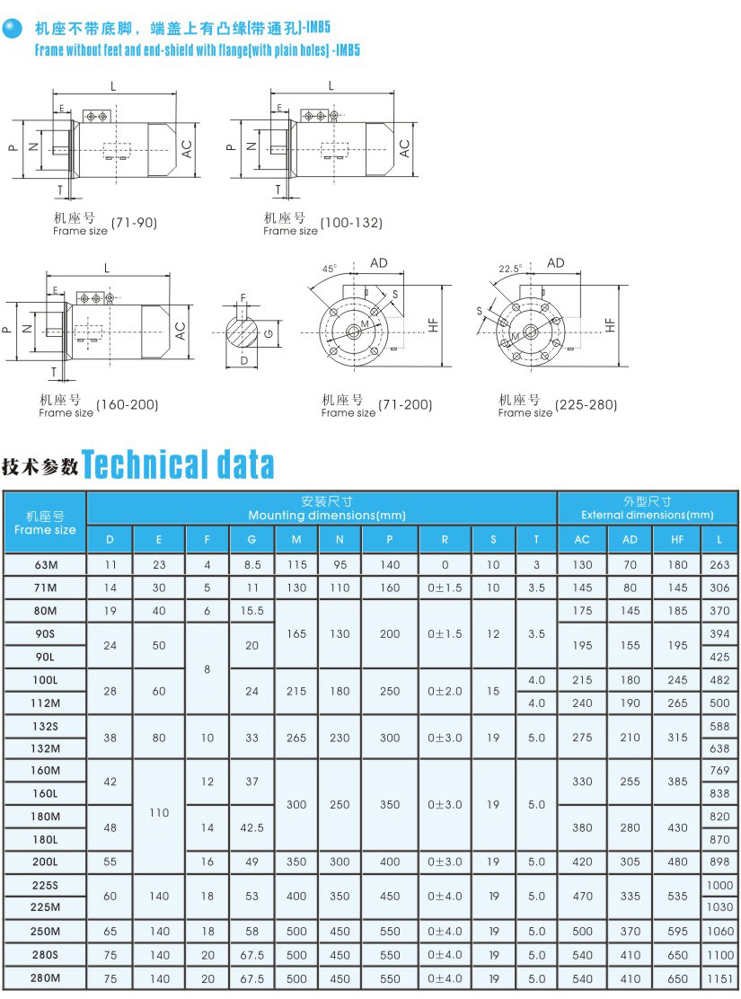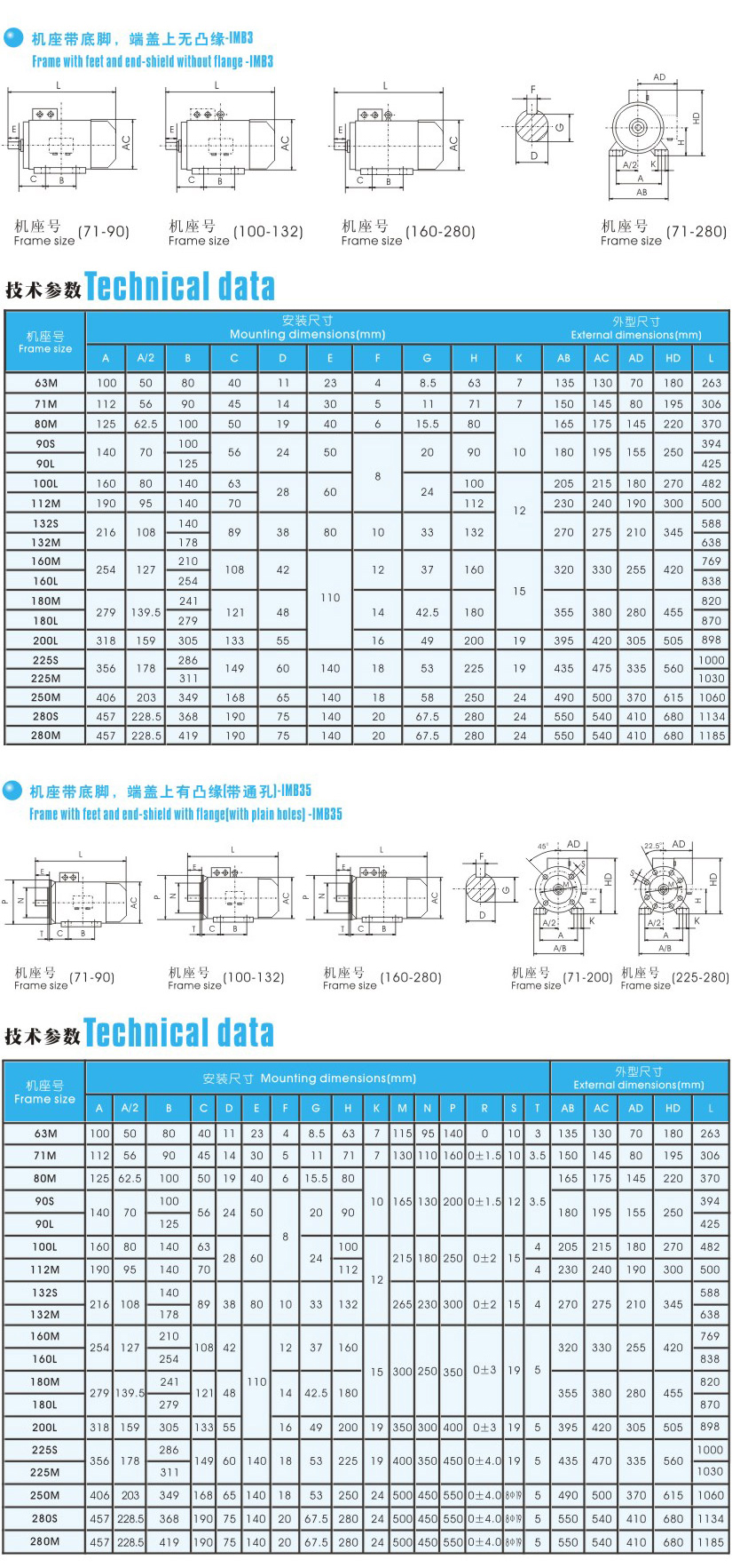 電磁制動(dòng)器額定電壓:電動(dòng)機(jī)機(jī)座號(hào)為71-100者為直流99V,112-250者為直流170V。